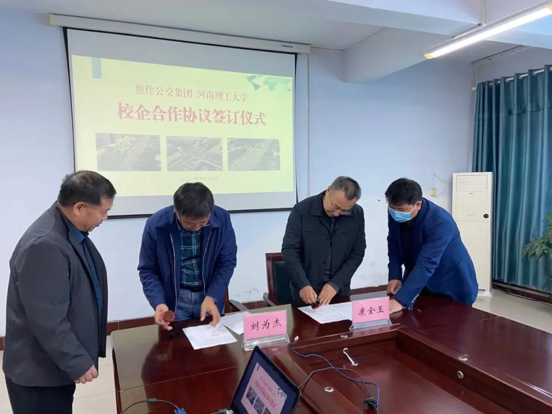 为进一步深化校企合作,实现校企产学研深度融合,2021年10月14日,学院与焦作市公共交通集团签订校企合作框架协议。焦作市公共交通集团副总经理刘为杰、公司党委书记康全玉、交通工程系主任郭保华、支部书记李香红等出席签约仪式。