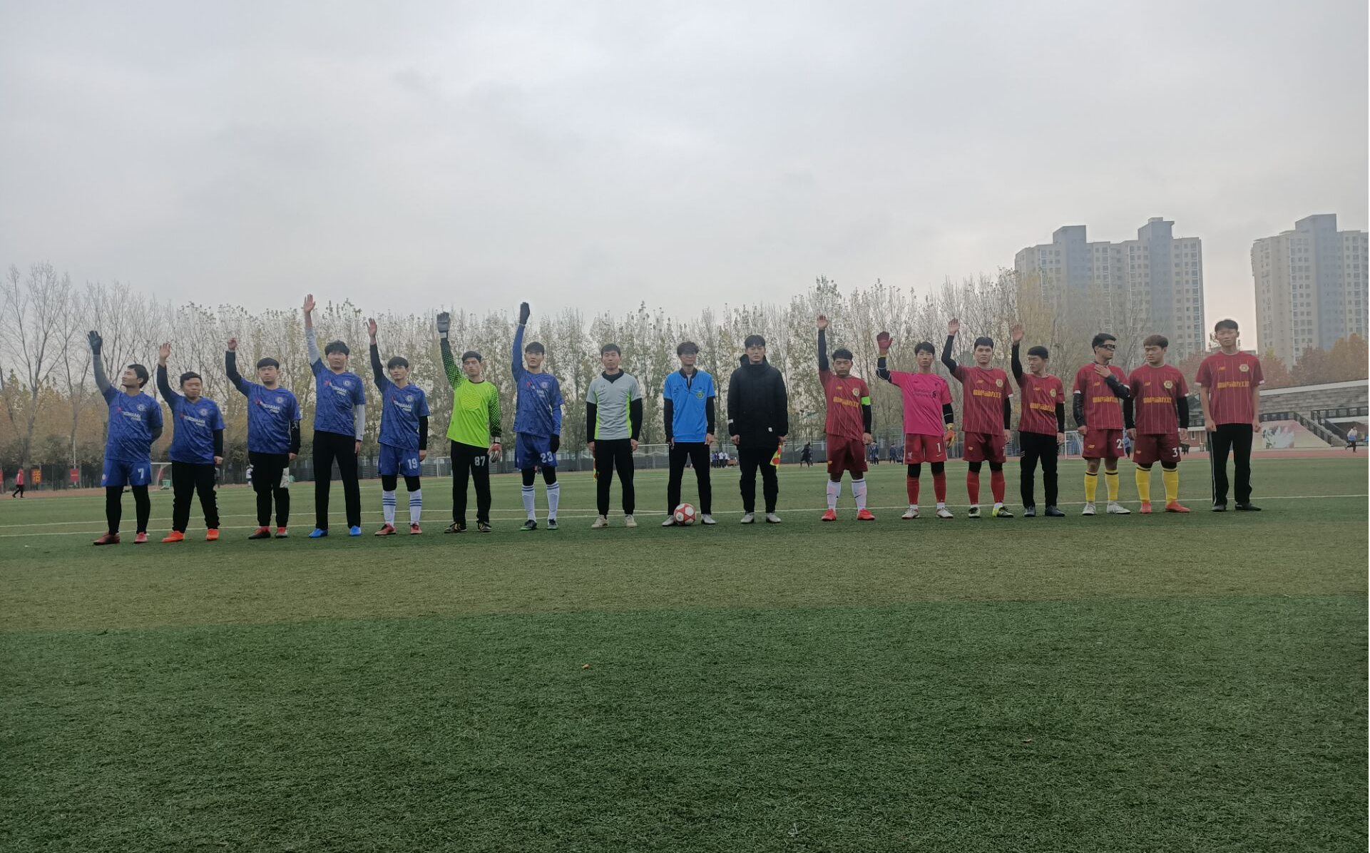 冬天在即,天渐微凉依旧挡不住理工学子的热情。球员在场上肆意的挥洒汗水,工作人员也在场下默默付出。公司作为承办方,积极配合组织本次比赛。为了保证比赛的顺利开展,不论刮风下雨工作人员都提前做好准备工作,认真坚守岗位,公平公正的对待每一场比赛。 在工作人员的辛勤付出下,公司第十七届理工杯足球赛完美谢幕。