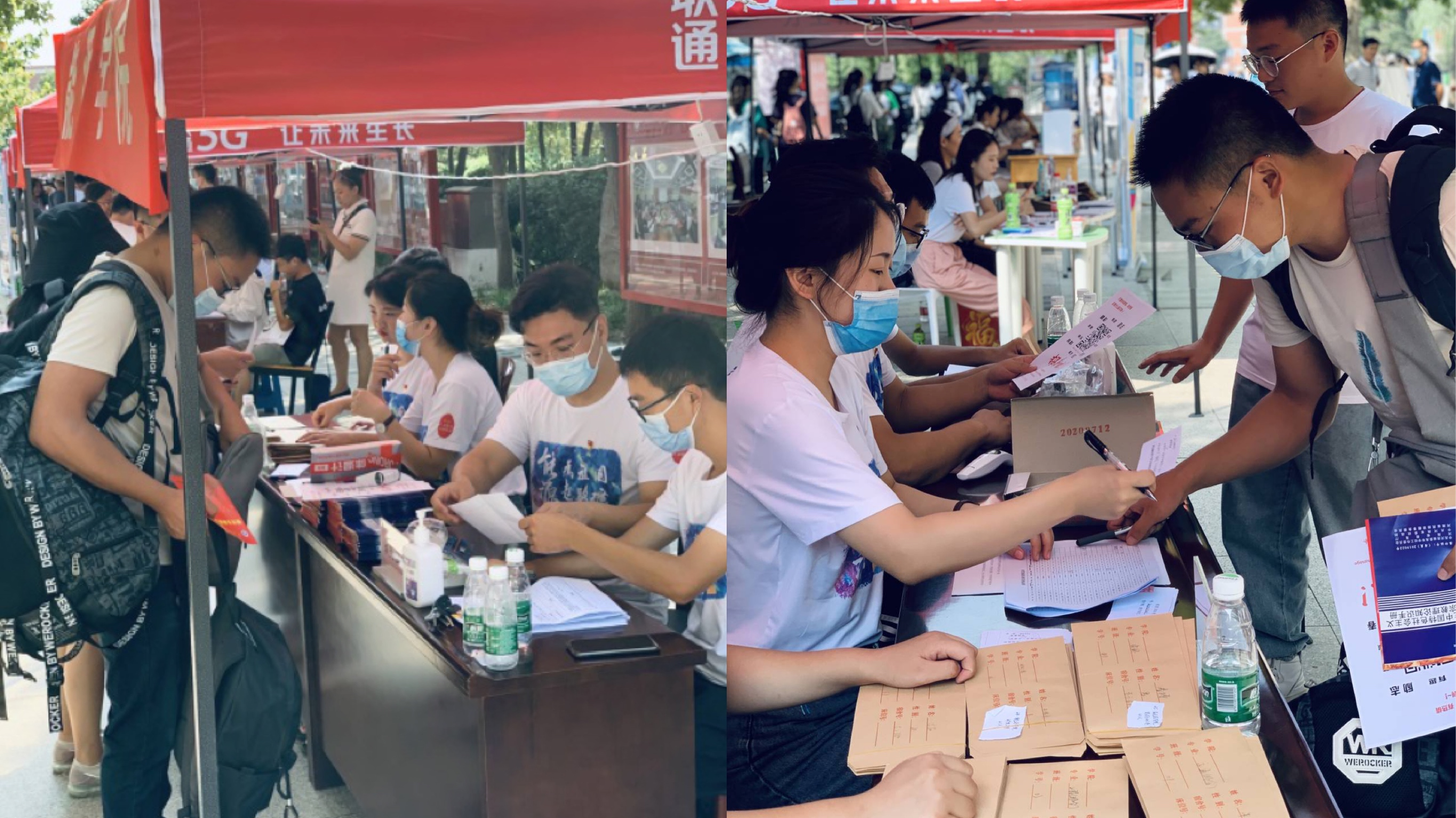 9月9日,高年级研究员工党员志愿者统一穿着“能为祖国,源起路矿”的文化衫,在春秋大道报到处迎接新生,开展新生报到工作。新生严格按照流程安排,自觉排队,保持间距,戴口罩,量体温。按照学校疫情防控常态化工作要求和新生报到要求,志愿者们按照测温查码,检查收取健康登记卡、发放温度计和入宿证明等步骤,有条不紊完成了新生报到工作。特殊情况除外,其余新生均于当天准时报到。