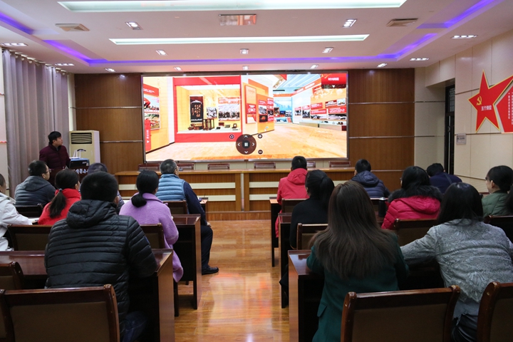 网上展览以开辟和发展中国特色社会主义道路、建设社会主义现代化国家为主题,以编年体为时间主线,安排设计了“序厅、屹立东方、改革开放、走向复兴、人间正道”5个部分,选择150个“新中国第一”进行展示。从1949年到2019年,跟随历史年轮,结合声光电等多媒体技术,全方位回顾和感知了新中国成立70年来中国共产党领导全国各族人民不畏艰险、团结奋进,努力实现新中国伟大跨越的光辉历程,梳理了新中国成立以来的各个重大历史性事件,其中有很多记忆属于我们的成长记忆,比如抗洪抢险、奥运会、第一条铁路、第一颗原子弹,真实展现了祖国生态文明建设的伟大决策与各个领域取得的非凡成就。唤起了我们内心深处深深的共鸣,我们能真切感受到新中国成立70年来,国家的社会发展和人民生活的巨大变化。最后,学院教职工共同分享了观看网上展馆的感受。