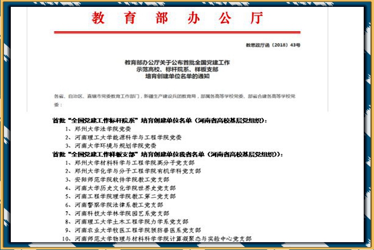 近日,教育部官网公布了首批全国党建工作示范高校、标杆院系、样板支部培育创建单位名单,其中,公司党委入选全国党建工作“标杆院系”培育创建单位,土木工程学院力学系党支部入选全国党建工作“样板支部”培育创建单位。