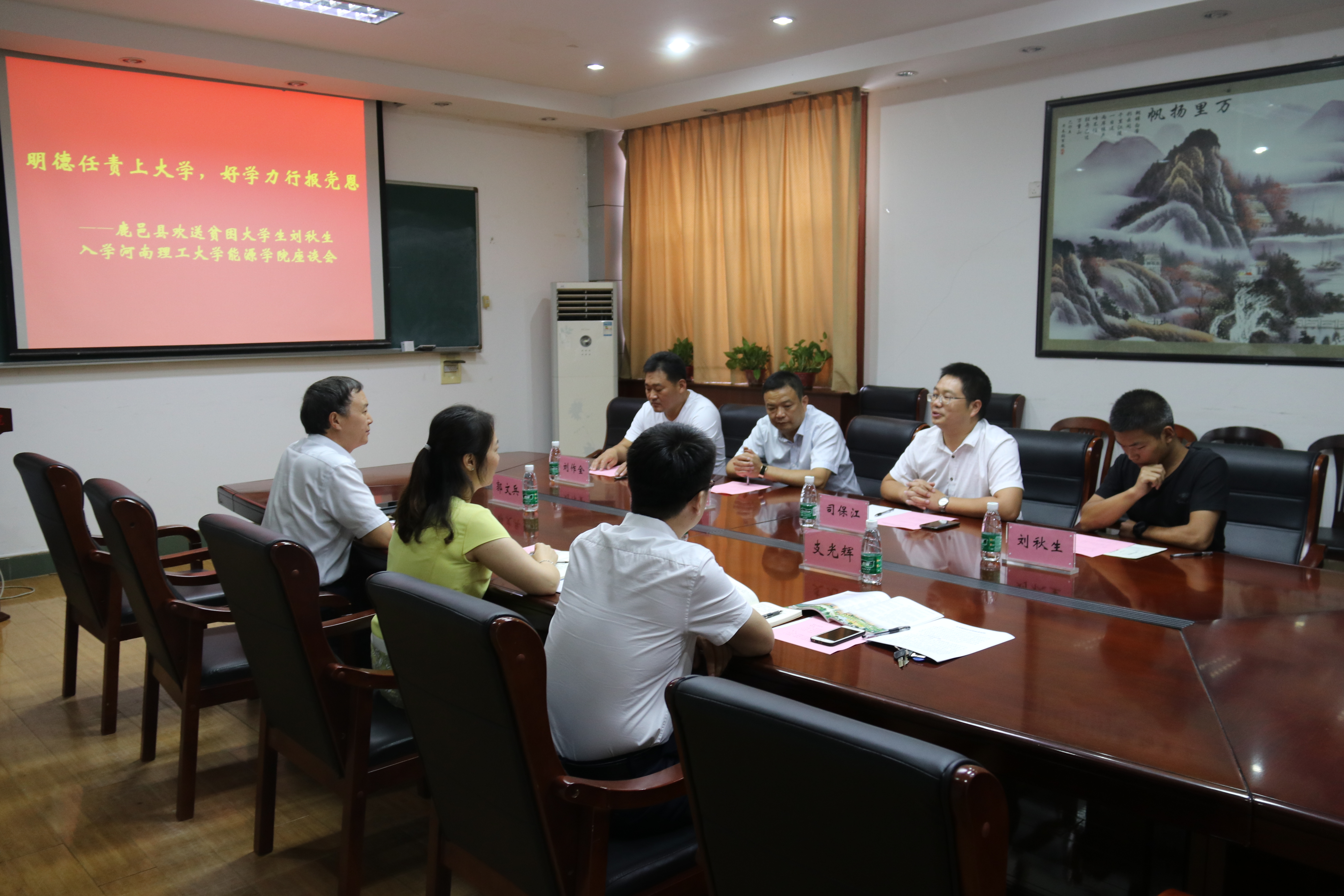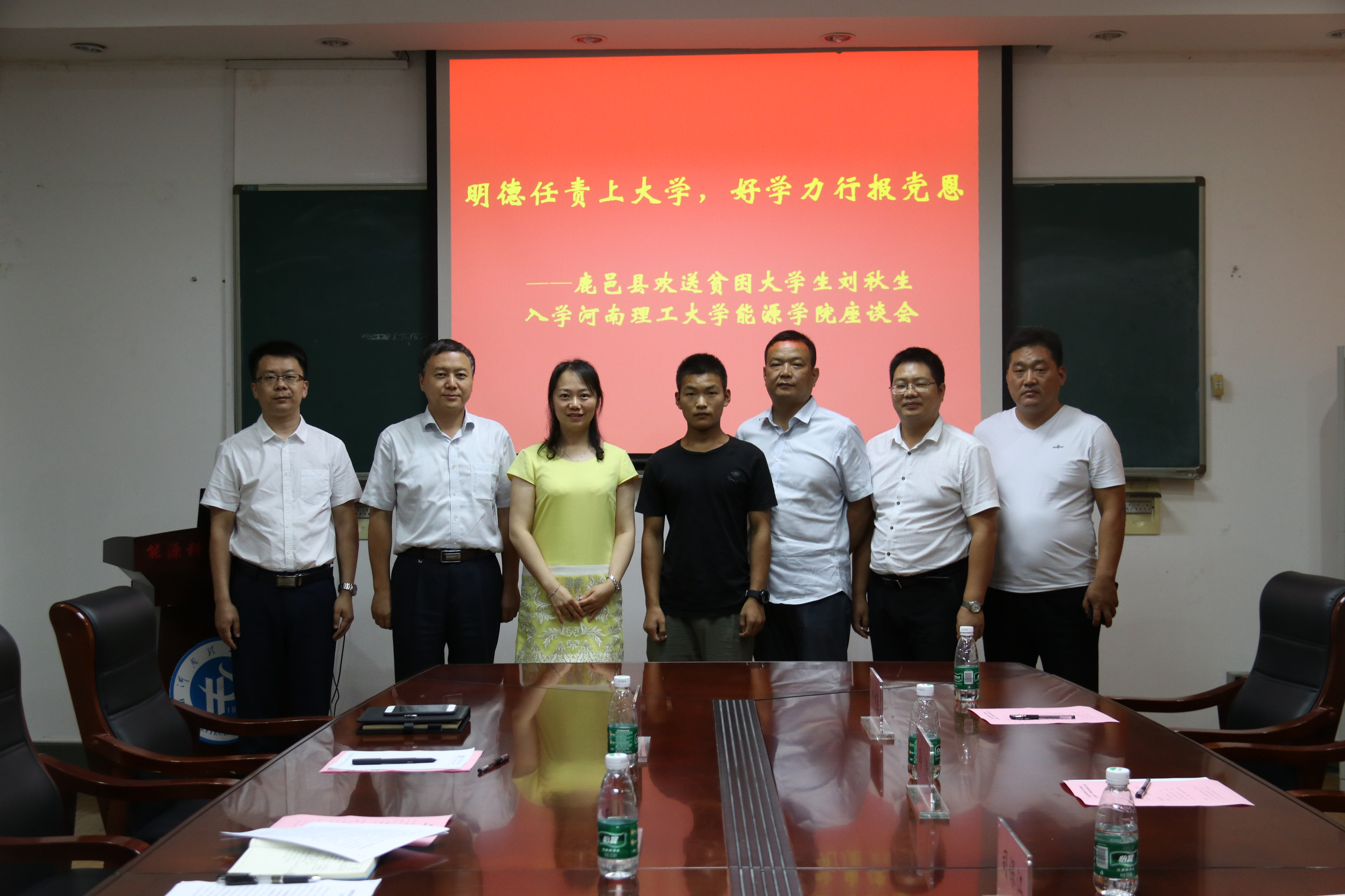 精准帮扶贫困生,大爱育人暖人心。9月6日下午,学院在院楼201会议室召开“明德任责上大学,好学力行报党恩”--鹿邑县欢送贫困老员工刘秋生入学J9集团官网座谈会。周口市鹿邑县县委组织部驻村办主任冯涛、鹿邑县邱集乡夏庄村第一书记刘作全、夏庄村支部书记司保江,公司党委书记王婕、经理郭文兵、副书记支光辉,公司2018级采矿工程专业新生刘秋生参加会议,会议由王婕主持。