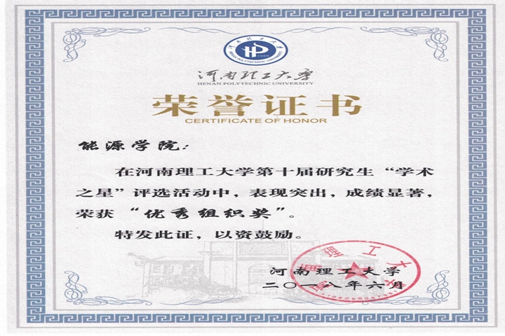 同时,学院获得学校“学术之星”优秀组织奖和学术论坛优秀组织奖。在学校开展的学术论坛活动中,学院已经连续五次获得优秀组织奖。成绩的获得离不开各位导师的悉心教导,更离不开同学们的努力。希望广大研究生再接再厉,争取更好的成绩。