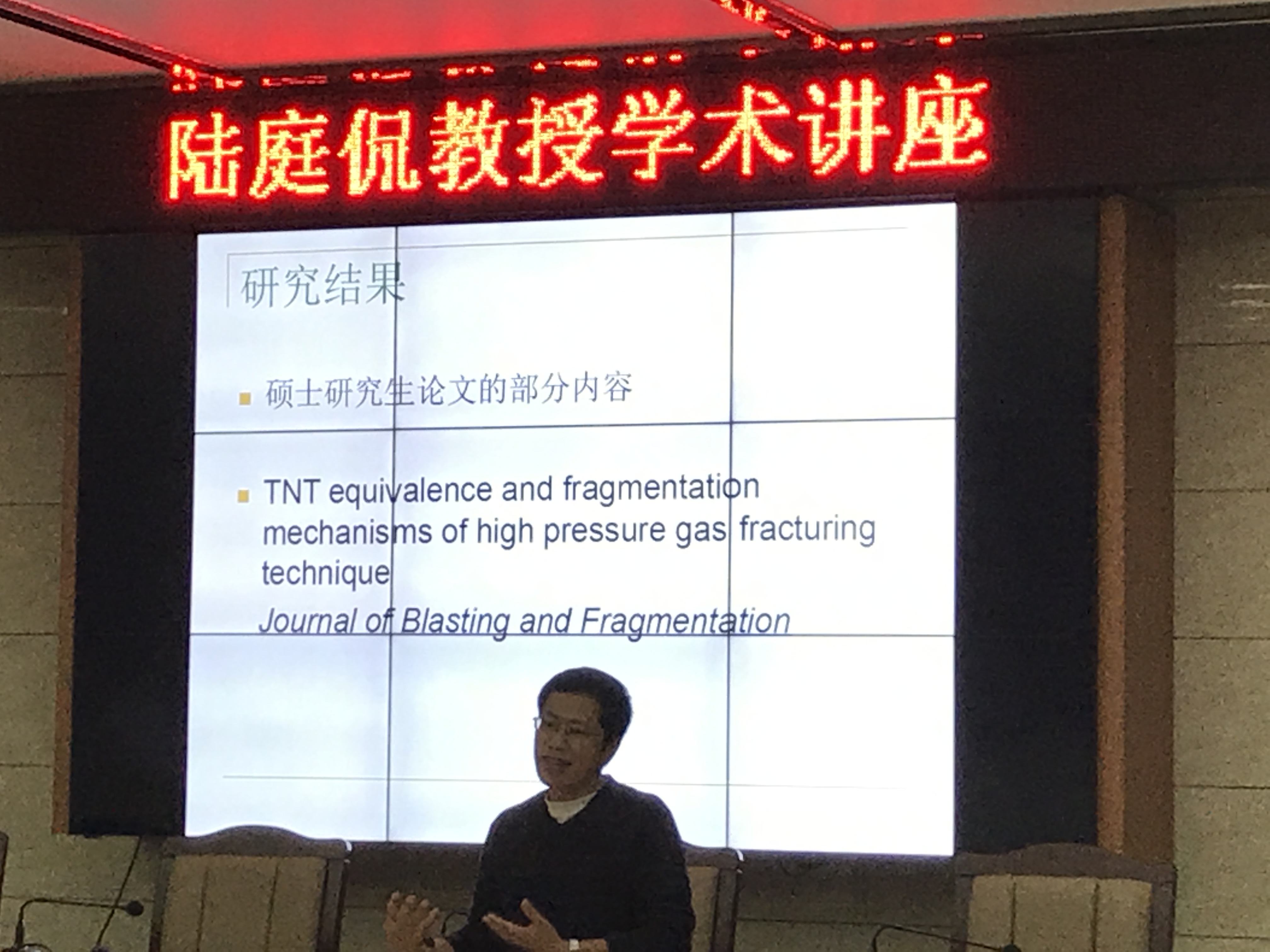 讲座上,陆庭侃教授详细介绍了怎样开展科研工作。他首先阐述了科研工作如何系统地,一步一步地开展,其中特别指出:“科研不会不要紧,要多查文献,多查国外文献,查不全文献不能做研究”,然后以液体二氧化碳相变煤层致裂为例,系统地讲述了科研过程中理论分析、实验验证、数值分析、现场验证、机理分析以及深入分析。强调了论文内容不能以描述性为主,做到“量化”标准。最后,陆老师提出了“知道自己无知,才说明你有进步”的思想。