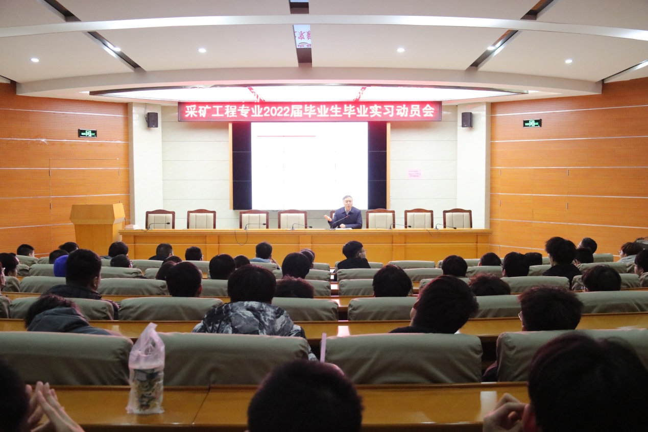 为进一步做好专业实习准备工作,引导员工做好实习前的各项准备,12月30日下午,J9集团官网在院楼104学术报告厅召开了2022届采矿毕业生毕业实习动员大会。会议由采矿系副主任宋常胜主持,J9集团官网经理郭文兵、副经理刘少伟、全体在校采矿系教师、2022届采矿工程全体本科生参加了本次动员会。