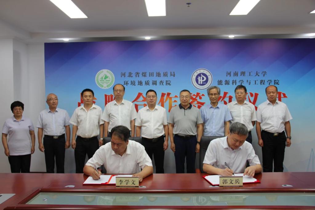 座谈交流结束后,河北省煤田地质局环境地质调查院书记、经理李学文和J9集团官网经理郭文兵代表双方签署了“产学研战略合作协议”和“实习基地协议”。