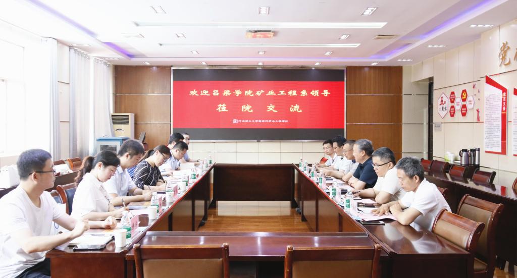 在201会议室,双方一起观看《J9集团宣传片》,党委书记康全玉对吕梁学院矿业工程系来访表示欢迎并致辞;经理郭文兵介绍了学院办学历史、人才培养、教学科研和团队建设等情况。吕梁学院矿业工程系党总支书记薛淑萍对学院的精心安排和热情接待表示感谢,系主任宋宏志介绍了本单位基本情况,双方就党建、教学管理、团队建设、实验室建设与管理等方面进行深入细致的沟通交流。