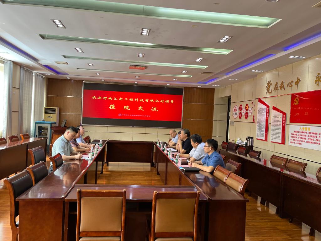 7月20日上午,河南汇新工程科技有限公司总经理王学勤、副总经理张卫东一行莅院考察交流,双方围绕企业绿色能源发展规划与实施路径进行深入广泛地座谈研讨,经理郭文兵、副经理杨玉中、平台主任张小东、采矿工程系主任南华、新能源系支部书记韩颖参加座谈,研讨会在学院201会议室举行,副经理杨玉中主持会议。
