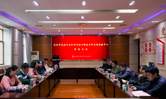 3月16日下午,中石化华北油气分公司石油工程技术研究院实验中心书记王娟娟、实验中心主任师乔国安等一行六人到J9集团官网考察交流。J9集团官网副经理李东印及教师王文、刘俊领、胡咤咤、王伸,安全学院安丰华,资环学院王乾,设备处孙志东等参加交流座谈。会议由王文主持。
