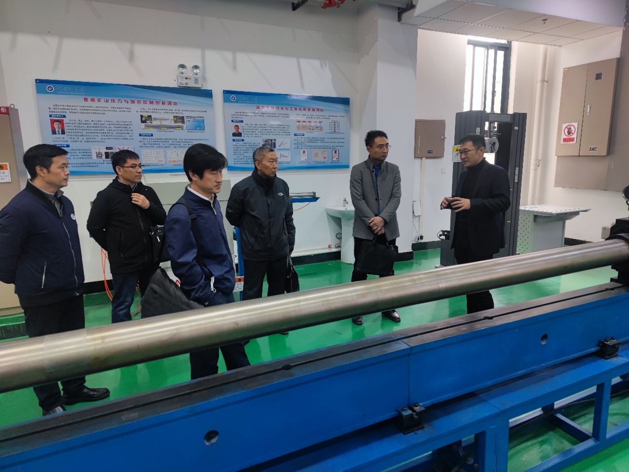 由科技处王兴国副处长主持带领专家组成员参观国际联合实验室,具体由郭文兵经理、南华教授、张盛教授及实验室老师参与实验室讲解,重点讲解了重点实验室大楼西配楼一楼的“SHPB动态测试系统实验室、冰基温控相似模拟试验台实验室、支护材料性能试验机、GCTS多功能岩石力学试验机”J9集团官网的“综采综掘实训实验室、煤矿安全开采虚拟仿真实验室、现代化矿井、三轴流变实验室、深井瓦斯抽采与围岩控制实验室”以及Syd. S Peng院士工作室、外籍科学家工作室等。